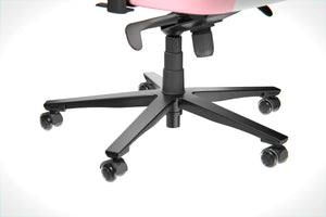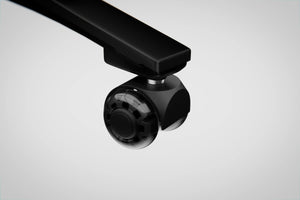 Base em liga de alumínio + rodízios de 50 mm em PU silencioso, para mobilidade leve e sem barulho.