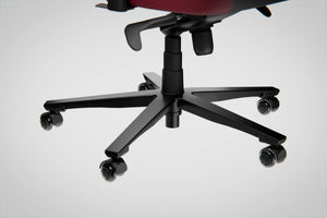 Base em liga de alumínio + rodízios de 50 mm em PU silencioso, para mobilidade leve e sem barulho.